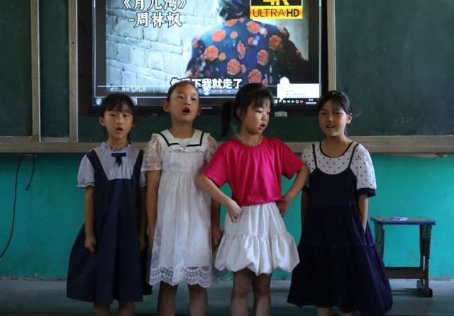 表演环节是仪式的高潮,歌声与舞蹈交织出真挚的情感。志愿者团队首先献唱道别歌曲《你未从离去》,歌声悠扬婉转,寄托了对孩子们的不舍与祝福;随后,一曲《小城夏天》抒发了志愿者与孩子们相遇的珍贵回忆,歌词中的“小城故事多”恰如支教生活的缩影,引得全场共鸣。孩子们也不甘示弱,踊跃报名节目:他们演唱了《陪你过个冬》和《月儿湾》,稚嫩的童声清澈动人,诉说着温暖相伴的故事。舞蹈表演同样精彩纷呈,孩子们的活泼舞步在《No no no》中活力四射,而志愿者杜牧雪老师带来的傣族舞《彩云之南》则将民族风情融入仪式,婀娜舞姿如彩云流动,赢得阵阵掌声。